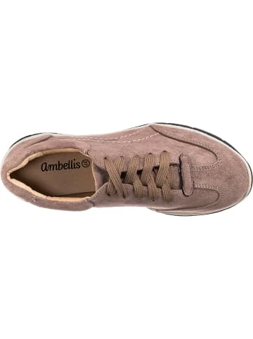 – Schuhweite: F – textiles Obermaterial – gute Fußanpassung durch den SchnürverschlussIdeal zu vielen verschiedenen Gelegenheiten: Diese ansprechend gestalteten Low Sneakers von der Marke ambellis. Das textile Obermaterial passt sich jedem Fuß an und überzeugt durch ein geringes Gewicht. Eine komfortable Anpassung an den Fuß ist durch den Schnürverschluss kein Problem.Verschluss: SchnürverschlussAbsatzart: FlachAbsatzhöhe: 2,8 cmSchuhweite: FObermaterial: Textil (Polyester)Futter: Sonstiges Material (Polyurethan)Decksohle: Sonstiges Material (Synthetik)Laufsohle: Sonstiges Material (TPR-Sohle)
