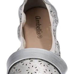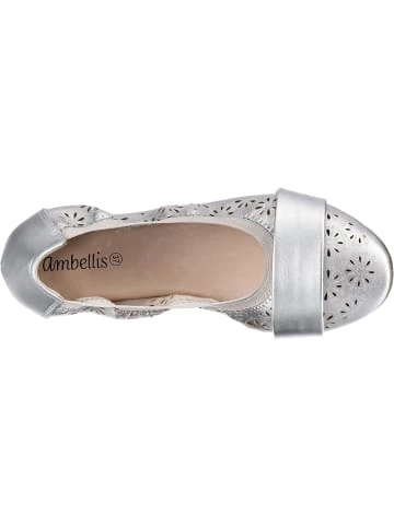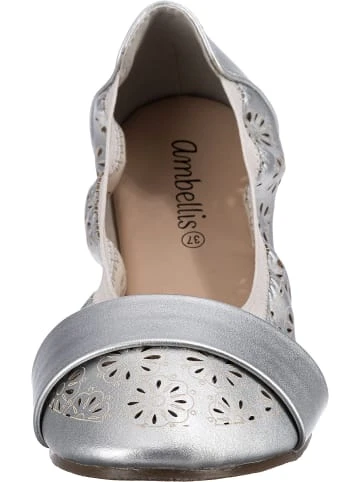 – Schuhweite: F – Oberfläche aus pflegeleichtem Synthetikmaterial – ohne Verschluss, einfach zum HineinschlüpfenDie Ballerinas aus dem Hause ambellis sorgen stets für einen trendigen Look. Die Oberfläche des Schuhpaares ist aus Synthetik und erzeugt ein stimmiges Design. Dieses Modell kommt ohne jeglichen Verschluss aus, sodass ganz einfach hineingeschlüpft werden kann. Dank der äußerst guten Anpassungsfähigkeit des textilen Canvas-Futters überzeugt das Paar mit einem angenehmen Tragekomfort.Verschluss: OffenAbsatzart: FlachAbsatzhöhe: 0,8 cmSchuhweite: FObermaterial: Sonstiges Material (Synthetik)Futter: Textil (Canvas)Decksohle: Sonstiges Material (Synthetik)Laufsohle: Sonstiges Material (TPR-Sohle)