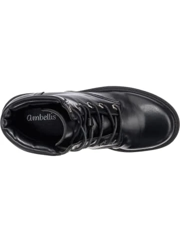 – im Fersenbereich verstärkt – Schuhweite: F – pflegeleichtes ObermaterialDie Schnürstiefeletten der Marke ambellis sorgen stets für einen schicken Auftritt. Das Obermaterial der Schuhe ist aus Synthetik und erzeugt ein stimmiges Design. Der Blockabsatz erzeugt eine modische Note. Eine individuelle Fußanpassung ist durch den Schnürverschluss problemlos möglich. Das Textilfutter aus Polyester ist angenehm anpassungsfähig.Verschluss: SchnürverschlussAbsatzart: BlockabsatzAbsatzhöhe: 6 cmSchuhweite: FObermaterial: Sonstiges Material (Synthetik)Futter: Textil (Polyester)Decksohle: Sonstiges Material (Synthetik)Laufsohle: Sonstiges Material (TPR-Sohle)