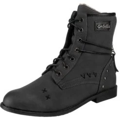– Fersenpartie verstärkt – Futter aus angenehm warmem Fleece – pflegeleichtes Synthetik-MaterialDiese modischen Schnürstiefeletten von ambellis vervollständigen unterschiedlichste Looks. Dank des Fleece-Futters bleiben die Füße wohlig warm. Die Oberfläche dieses Paares besteht aus Synthetik und erzeugt ein stimmiges Design. Eine individuelle Anpassung an den Fuß wird durch den Schnürverschluss ermöglicht, der außerdem durch einen praktischen Reißverschluss ergänzt wird.Verschluss: Reißverschluss, SchnürverschlussAbsatzart: FlachAbsatzhöhe: 2 cmSchuhweite: MZusatzfunktion: WarmfutterObermaterial: Sonstiges Material (Synthetik)Futter: Textil (Fleece)Decksohle: Textil (Fleece)Laufsohle: Sonstiges Material (TPR-Sohle)