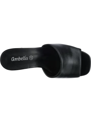 – für spannende Outfits – Schuhweite: F – pflegeleichtes Synthetik-MaterialDiese Sandaletten der Marke ambellis setzen einen unverwechselbaren Akzent. Es handelt sich um ein Schuhpaar zum einfachen und schnellen Hineinschlüpfen. Die Oberfläche dieses Paares ist aus strapazierfähigem Synthetik und erzeugt ein stimmiges Design. Zum besonderen Look trägt auch der eindrucksvolle Blockabsatz bei.Verschluss: OffenAbsatzart: BlockabsatzAbsatzhöhe: 8,5 cmSchuhweite: FObermaterial: Sonstiges Material (Synthetik)Futter: Sonstiges Material (Synthetik)Decksohle: Sonstiges Material (Synthetik)Laufsohle: Sonstiges Material (TPR-Sohle)