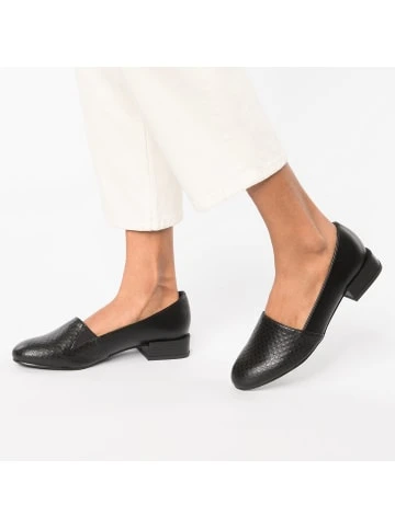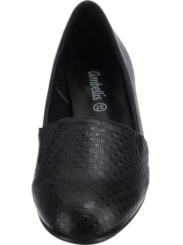 – angenehm leicht – Schuhweite: F – pflegeleichtes SynthetikmaterialErgänzen Ihre Garderobe: Die ansprechend gestalteten Loafers der Marke ambellis. Der Blockabsatz in bequemer Höhe bietet ein angenehmes Tragegefühl und einen stilsicheren Touch. Das Modell kommt ohne Verschluss aus, sodass ganz einfach hineingeschlüpft werden kann. Das Obermaterial des Paares ist aus Synthetik und erzeugt ein stimmiges Design.Verschluss: OffenAbsatzart: BlockabsatzAbsatzhöhe: 2,5 cmSchuhweite: FObermaterial: Sonstiges Material (Synthetik)Futter: Sonstiges Material (Synthetik)Decksohle: Sonstiges Material (Synthetik)Laufsohle: Sonstiges Material (TPR-Sohle)