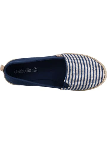 – gemütlich und zeitlos – Schuhweite: F – textiles ObermaterialUnterstreichen viele verschiedene Outfits: Diese stilecht gestalteten Espadrilles aus dem Hause ambellis. Das Schuhpaar kommt ohne jeglichen Verschluss aus, sodass ganz einfach hineingeschlüpft werden kann. Das textile Obermaterial ergänzt die Aufmachung dieses Paares. Das Textilfutter aus Canvas ist angenehm anpassungsfähig.Verschluss: OffenAbsatzart: FlachAbsatzhöhe: 0,5 cmSchuhweite: FObermaterial: Textil (Textil)Futter: Textil (Canvas)Decksohle: Textil (Canvas)Laufsohle: Sonstiges Material (TPR-Sohle)