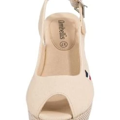 – Schuhweite: F – anschmiegsame und robuste Canvas-Oberfläche – individuelle Weitenregulierung dank Schnalle möglichDiese modischen Keilsandaletten von ambellis unterstreichen Ihr Outfit. Die Canvas-Oberfläche ist sehr strapazierfähig sowie anschmiegsam. Das Futter aus Canvas ist angenehm anpassungsfähig. Für einen sicheren Sitz am Fuß sorgt die Schnalle und garantiert darüber hinaus eine individuelle Regulierung der Schuhweite. Der hohe Keilabsatz unterstreicht die besondere Optik dieses Modells.Verschluss: SchnalleAbsatzart: Keilabsatz / WedgeAbsatzhöhe: 7,5 cmSchuhweite: FObermaterial: Textil (Canvas)Futter: Textil (Canvas)Decksohle: Textil (Canvas)Laufsohle: Sonstiges Material (TPR-Sohle)
