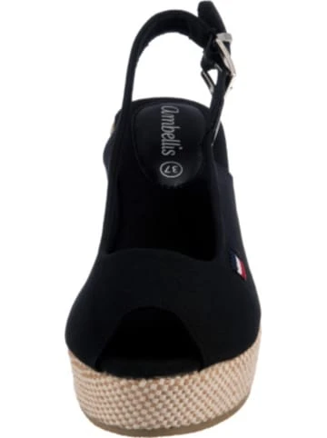 – Schuhweite: F – anschmiegsame und robuste Canvas-Oberfläche – individuelle Weitenregulierung dank Schnalle möglichDiese modischen Keilsandaletten von ambellis unterstreichen Ihr Outfit. Die Canvas-Oberfläche ist sehr strapazierfähig sowie anschmiegsam. Das Futter aus Canvas ist angenehm anpassungsfähig. Für einen sicheren Sitz am Fuß sorgt die Schnalle und garantiert darüber hinaus eine individuelle Regulierung der Schuhweite. Der hohe Keilabsatz unterstreicht die besondere Optik dieses Modells.Verschluss: SchnalleAbsatzart: Keilabsatz / WedgeAbsatzhöhe: 7,5 cmSchuhweite: FObermaterial: Textil (Canvas)Futter: Textil (Canvas)Decksohle: Textil (Canvas)Laufsohle: Sonstiges Material (TPR-Sohle)