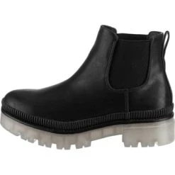 – verstärkte Ferse – elastische Einsätze am Schaft für eine gute Anpassung – vegane ProduktionDiese trendigen Chelsea Boots der Marke ambellis ergänzen verschiedene Outfits. Der Blockabsatz verbindet einen stilsicheren Look mit angenehmem Tragekomfort. Die Oberfläche dieses Modells besteht aus Synthetik und besticht mit der ansprechenden Gestaltung. Ein Pluspunkt ist zudem das anpassungsfähige Polyester-Futter. Eine optimale Anpassung ist durch das elastische Band problemlos möglich.Verschluss: Elastisches BandAbsatzart: BlockabsatzAbsatzhöhe: 5 cmSchuhweite: FZusatzfunktion: veganObermaterial: Sonstiges Material (Synthetik)Futter: Textil (Polyester)Decksohle: Sonstiges Material (Synthetik)Laufsohle: Sonstiges Material (TPR-Sohle)