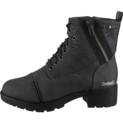 – Fersenbereich verstärkt – anpassungsfähiges Textilfutter – pflegeleichte OberflächeDie Schnürstiefeletten aus dem Hause ambellis sorgen stets für einen trendigen Style. Die Oberfläche des Schuhs ist aus Synthetik und überzeugt mit der modischen Gestaltung. Zusätzlich zum Schnürverschluss ist dieses Modell mit einem praktischen Reißverschluss versehen.Verschluss: Reißverschluss, SchnürverschlussAbsatzart: FlachAbsatzhöhe: 1 cmSchuhweite: MObermaterial: Sonstiges Material (Synthetik)Futter: Textil (Textil)Decksohle: Sonstiges Material (Synthetik)Laufsohle: Sonstiges Material (TPR-Sohle)